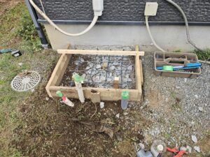 今回はエコキュート交換とソーラーパワーコンデンサの交換工事です。既存エコキュートの基礎が傾いていたので新しく基礎からやり変えました。前に施工した業者様基礎に鉄筋入ってませんけど?何百キロにもなるエコキュートの基礎に鉄筋いれなきゃ傾きますよ…❗色んな業者が居ますね(笑)今回は差し筋入れて鉄筋入れて杭も打ち込んだのでバッチリです😀ソーラーのパワーコンデンサも10年経つとくたびれて発電量が少なくなるようです。新しいパワコンに交換したら今までの倍近く発電してくれました。お客様にも喜んで頂けました😌ちなみにエコキュート交換は今、国から補助金が出ますのでなくなる前に交換がお勧めです。8万円~10万円位出ますよー😄申請代理店で施工しないと補助金貰えないので注意して下さい。弊社は補助金登録店なので施工宜しくお願い致します。😄