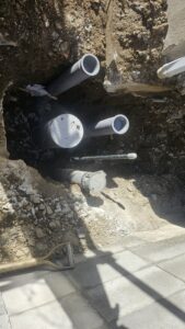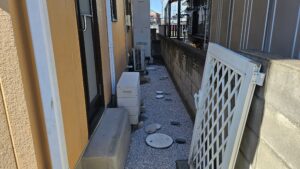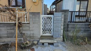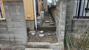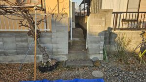 入り口も勝手口がありこのままでは全て人力工事になってしまいます。人力工事で日数が無駄にかかってしまうのはお客様にとっても負担がかかってしまう(金額的)ならば重機が入る用に勝手口の階段と入り口ブロック壊してしまえば仕事がかなり速いと思いお客様と相談して解体して作業しました😀作戦は大成功で外構工事含めても役一週間で完成致しました。既存の門柱もきれいに撤去出来たので再利用出来ました。水道管も一部分新規で配管しました。コストを抑える為に元々コンクリートだった配管経路は白砕石を敷き勝手口階段補修と土留めブロック、そしてブロック7段積んで土間コンクリート打って完成致しました。数有る水道工事店から今回、自社を選んでくれたお客様に感謝致します。大げさかも知れませんが命有る限り何か有りましたらご協力致しますのでこれからも宜しくお願い致します。誠設備工業、外構工事から水道工事、内装クロス、住宅全て対応致しますので何でもご相談ください😌