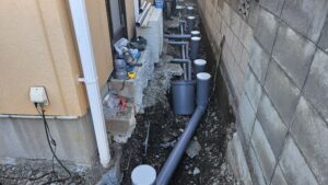 久しぶりにお世話になります(笑)今回は施行事例として地元熊谷市内にて排水、切り替え工事を施行致しましたので紹介致します。排水切り替え工事とは浄化槽を廃止して本下水に切り替えると言う工事内容です。今回のお客様宅は排水経路が全てコンクリート土間でした。